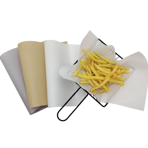 产品克重范围25-80g/m²,防油等级KIT0-KIT12,有白色、本色、灰色等,具有手捏不透油、折缝不渗油、耐高温高压等特点,可用于汉堡、薯条、炸鸡等包装,其中12级白色和本色高防渗透防油纸,主要用于制做爆米花袋,防油渗透时间大于50分钟。根据客户需要可提供无氟产品。